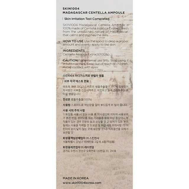 آمپول SKIN1004 Madagascar Centella Ampoule یک سرم مینیمال و تسکیندهنده است که با استفاده از عصاره خالص Centella Asiatica ماداگاسکار، به کاهش قرمزی، آرامسازی پوست و تقویت سد پوستی کمک میکند. این آمپول با فرمول سبک و بدون مواد تحریککننده، برای استفاده روزانه پوستهای حساس، ملتهب یا تحت استرس طراحی شده است.